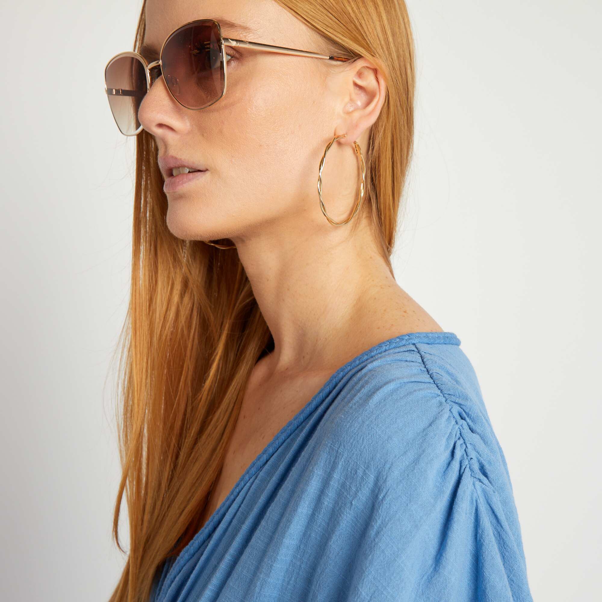 Robe longue en double gaze de coton bleu