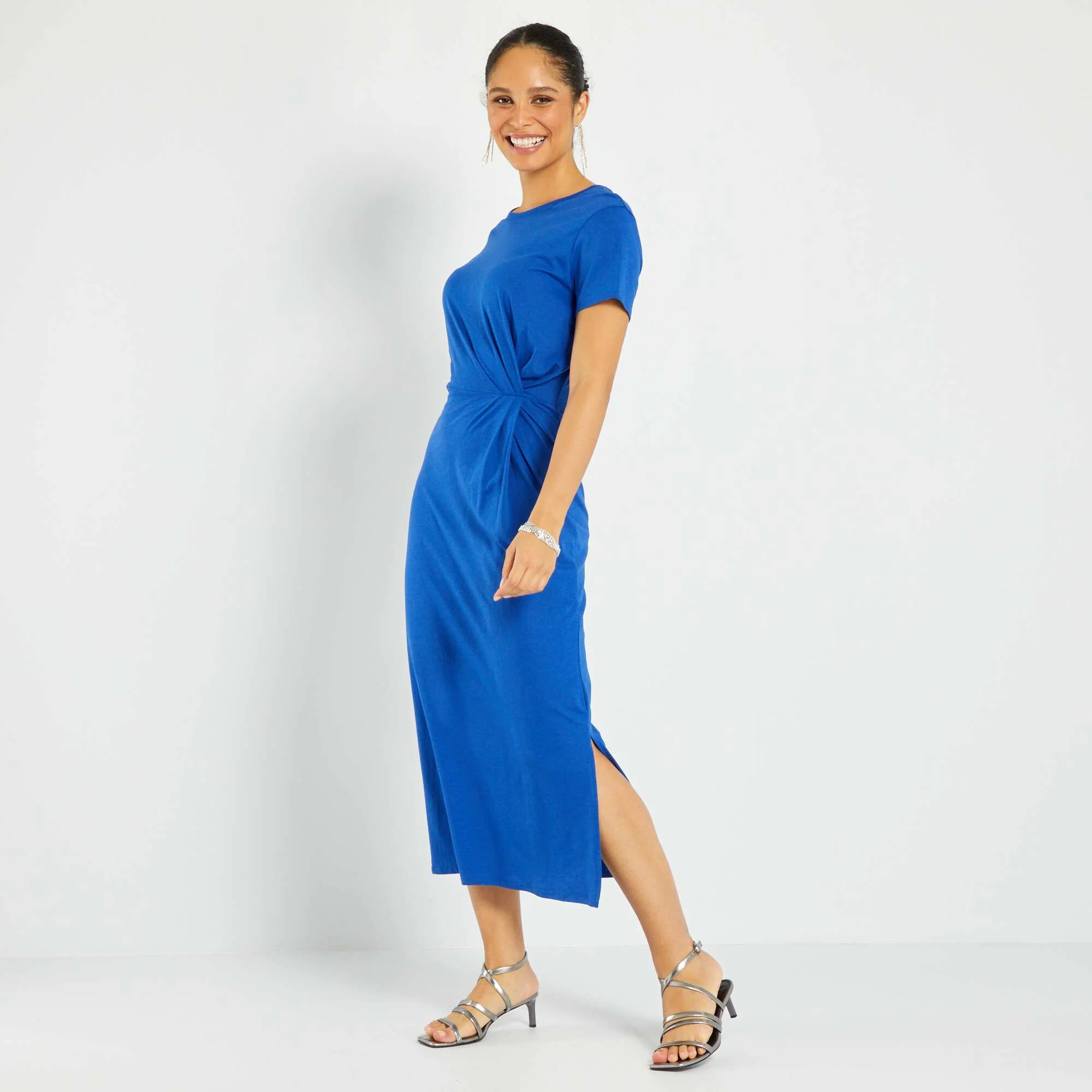 Robe longue en jersey bleu