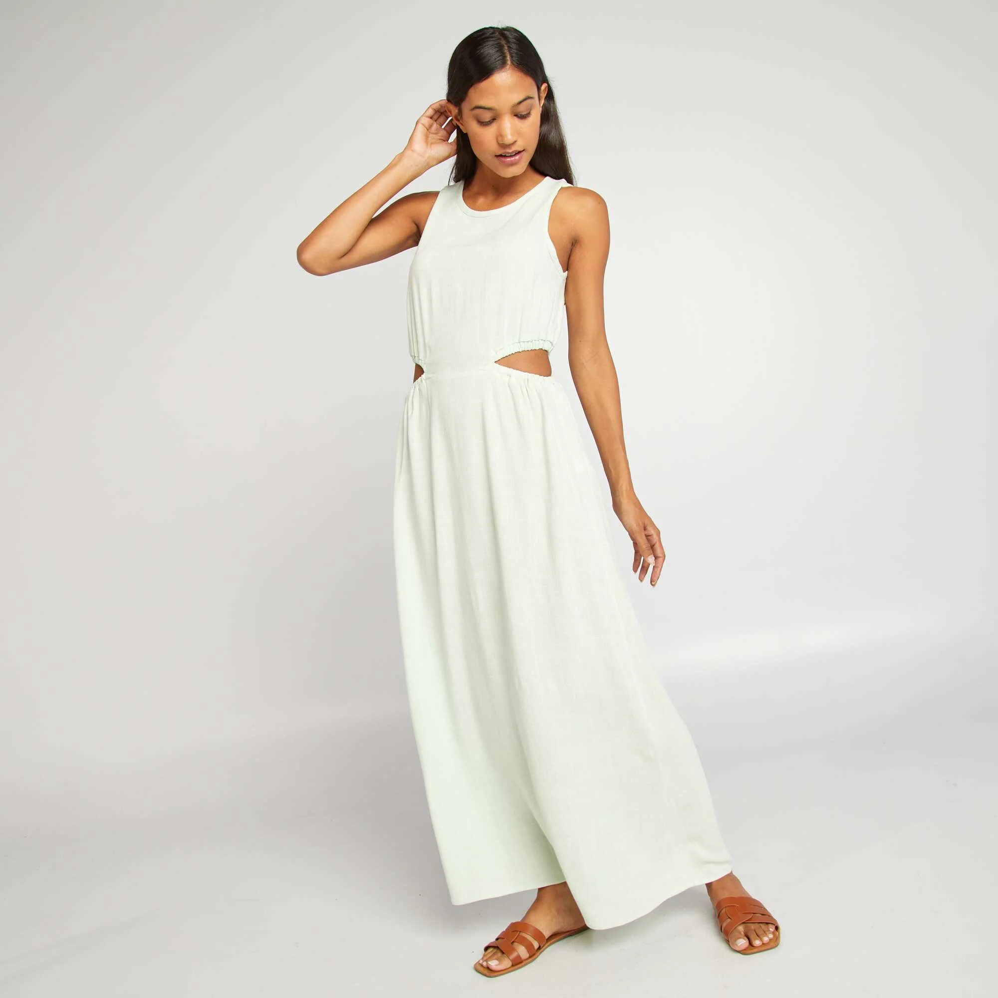 Robe mi-longue avec fentes découpées Vert