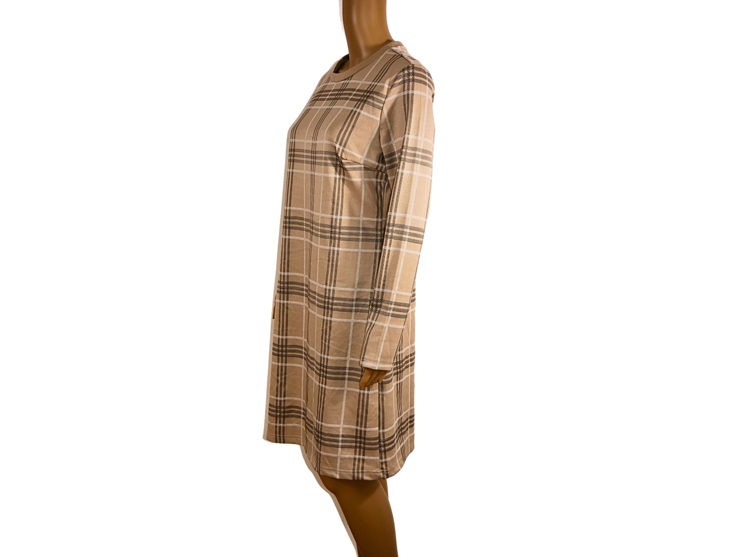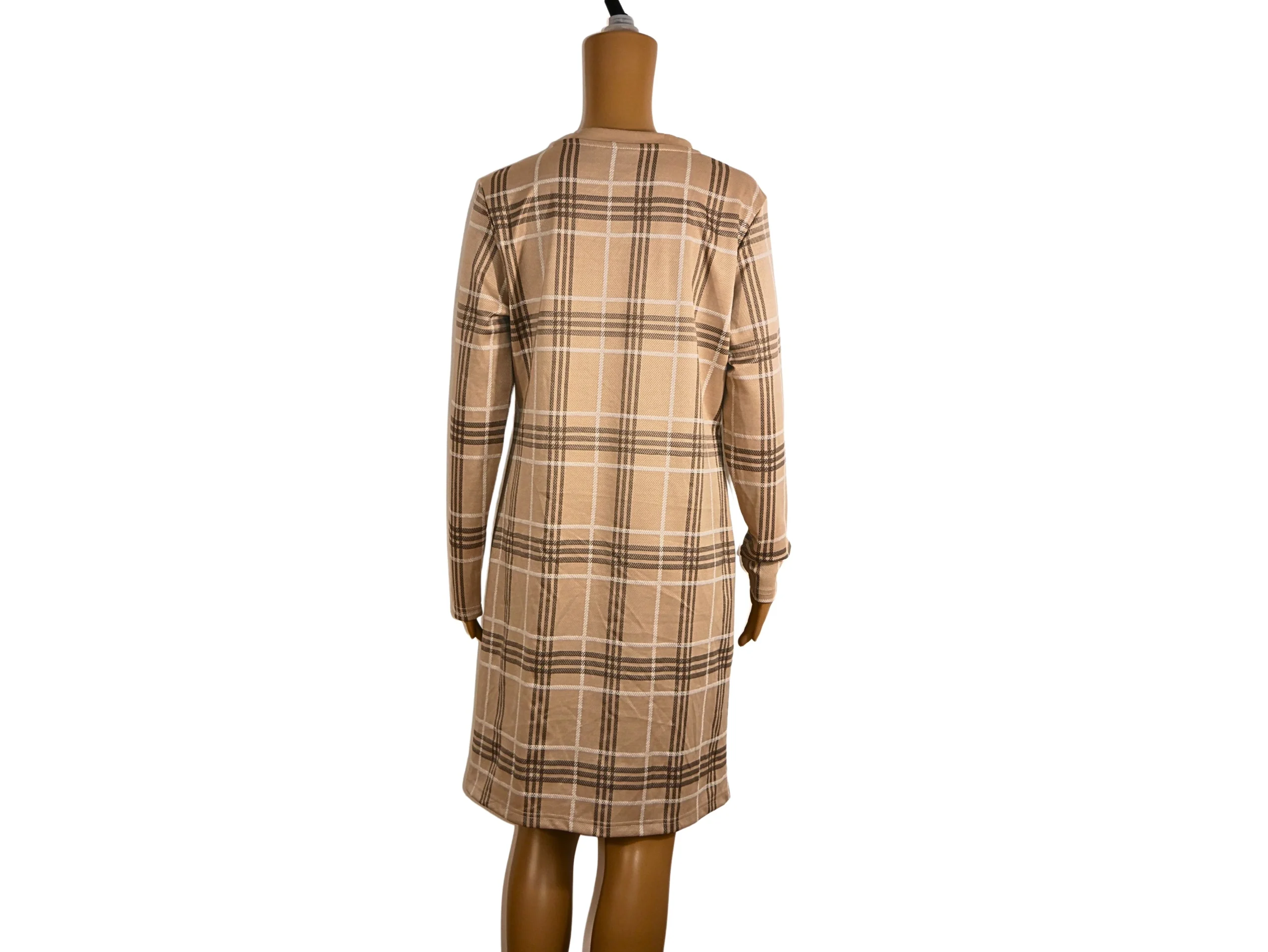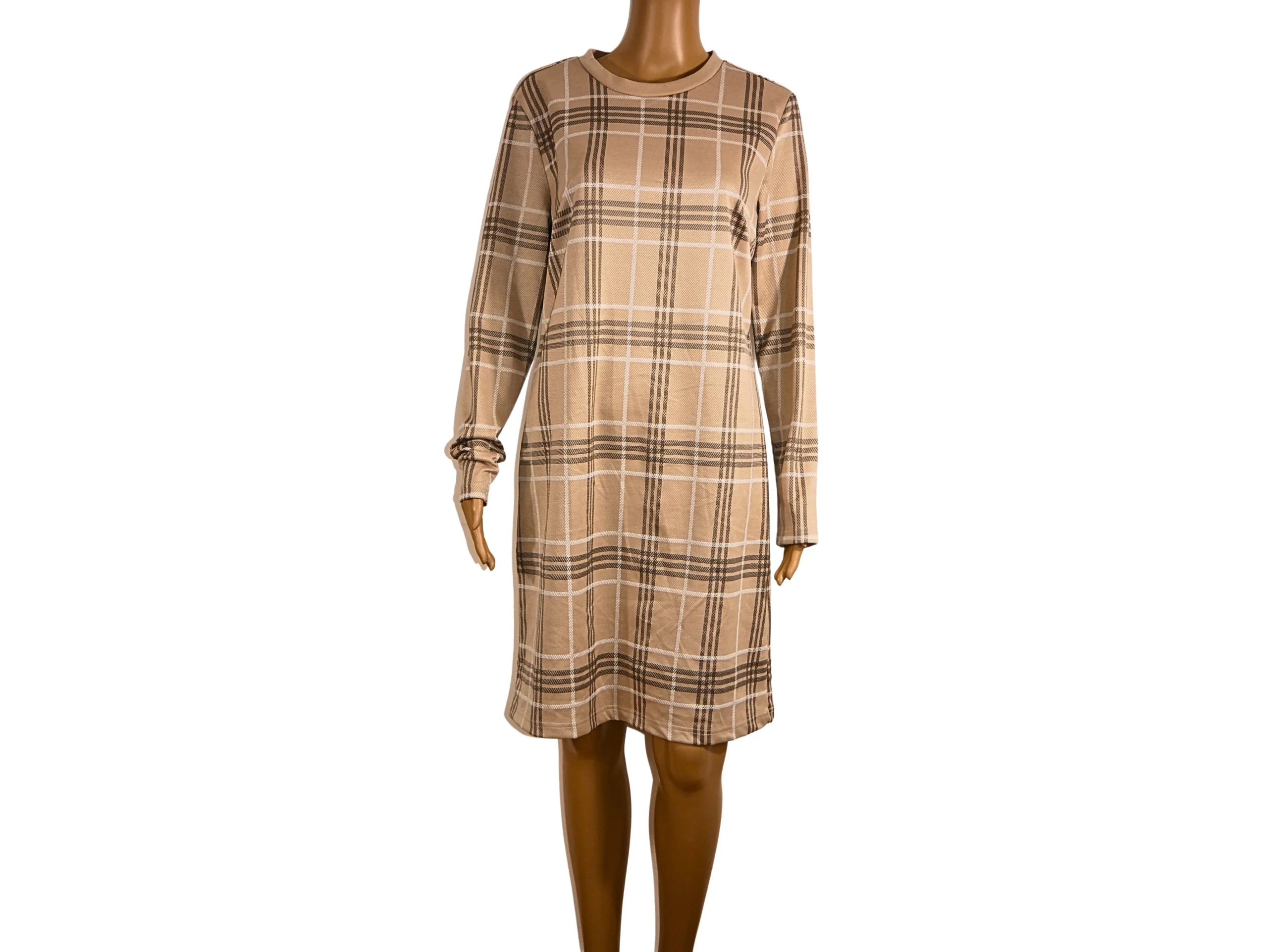 Cette robe pull en imprimé carreaux beige est un choix élégant et confortable pour votre garde-robe. Confectionnée avec soin, elle offre un style à la fois décontracté et sophistiqué, parfait pour la saison automne-hiver.