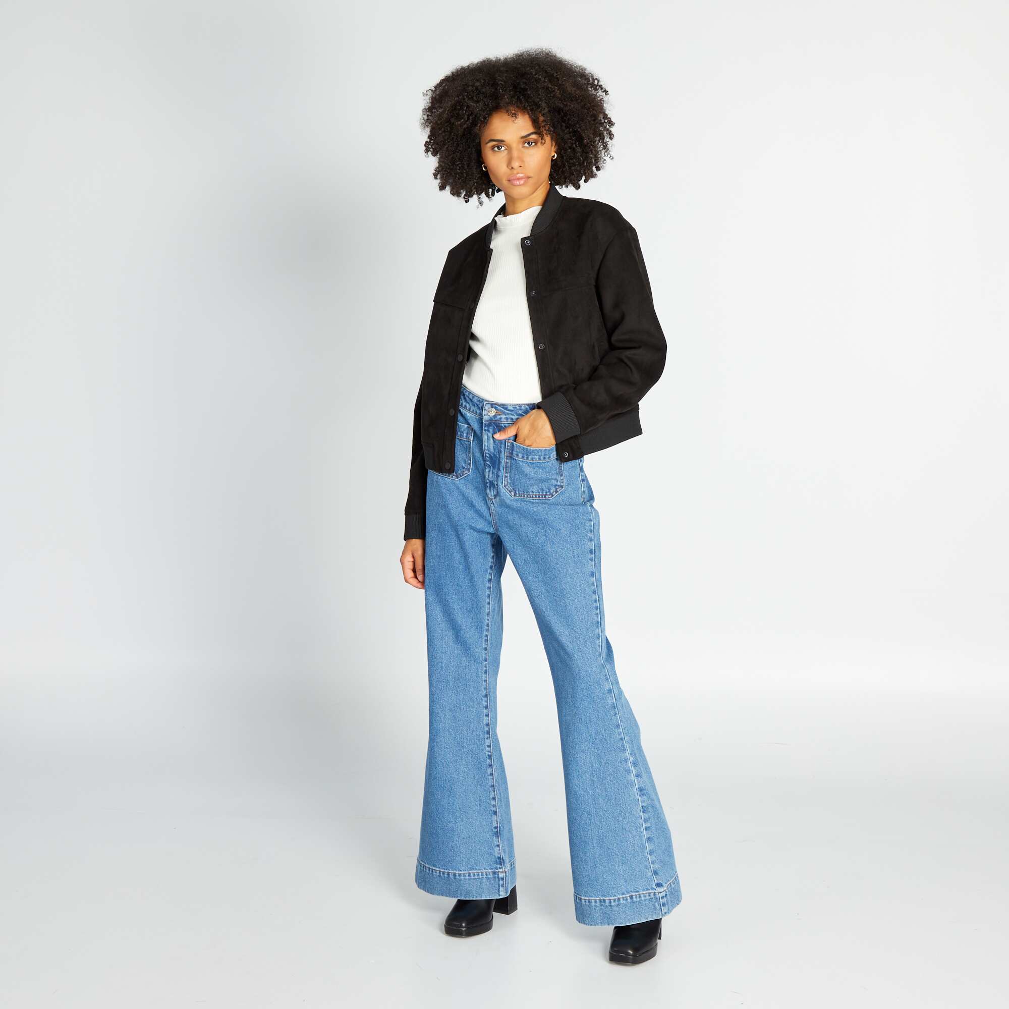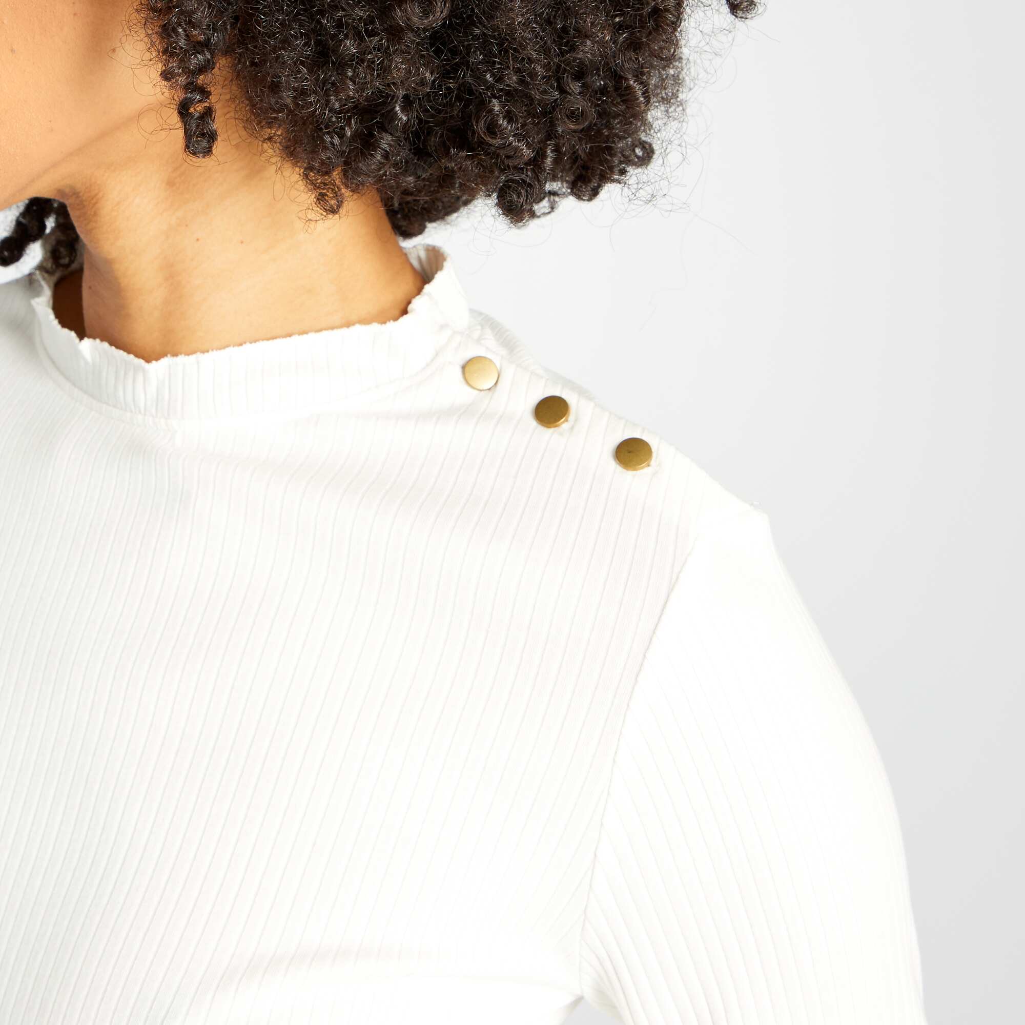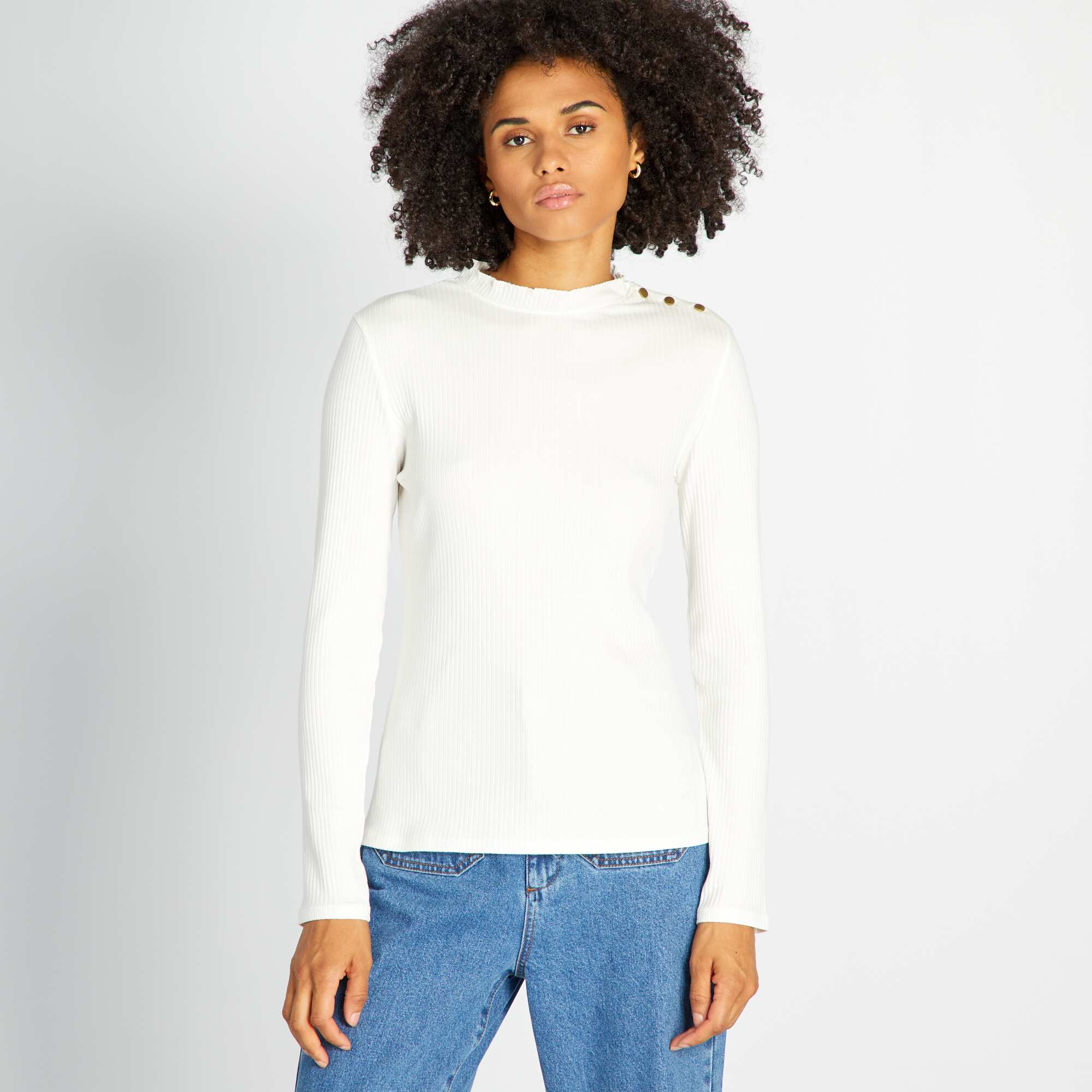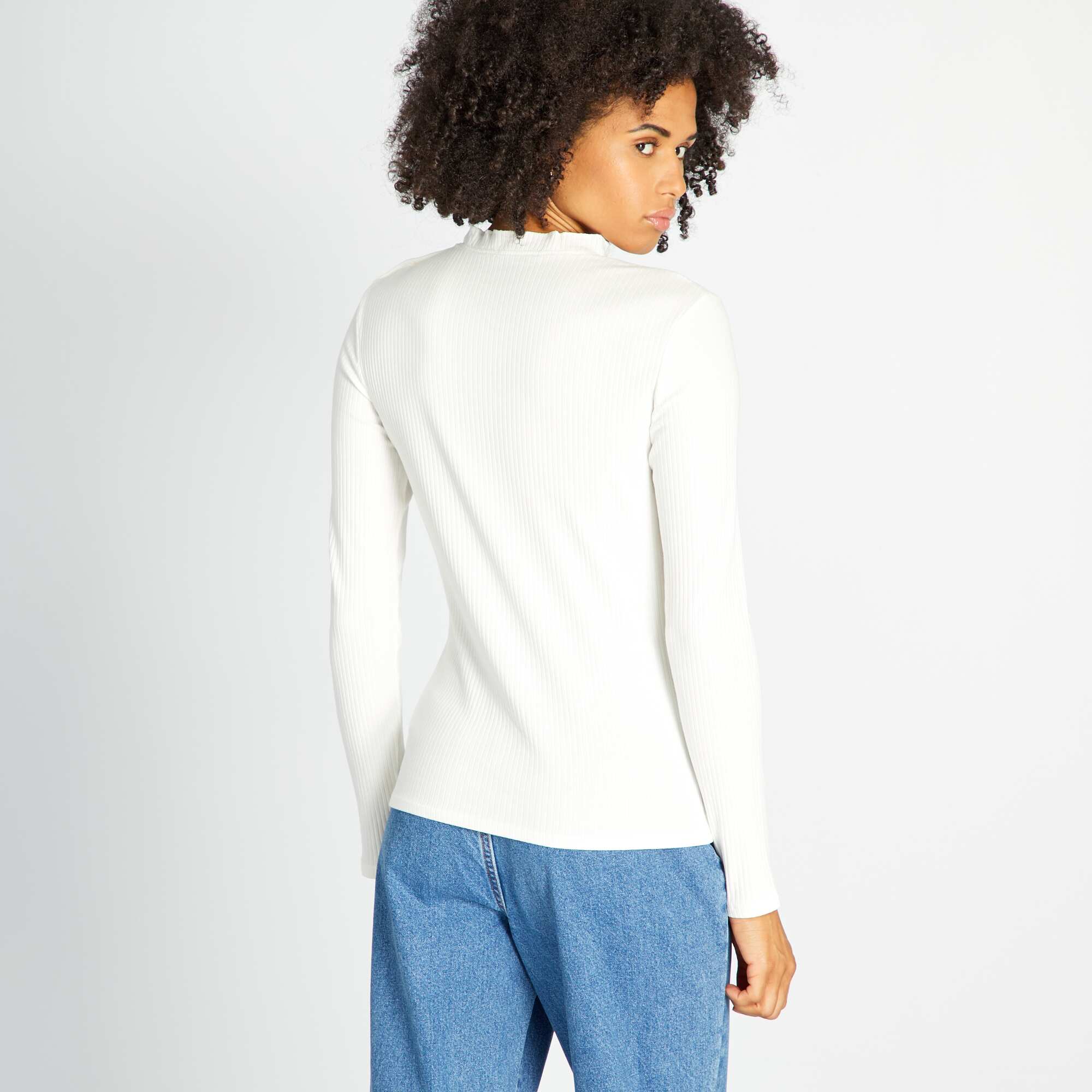 T-shirt à manches longues en maille côtelée Blanc