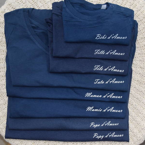 Un look pour toute la famille d’amour Retrouvez les tee-shirts famille d’amour pour toute la famille !!! Papa, maman, bébé, fille, fils, tata, mamie, papy d’amour Large choix de tailles pour toutes la famille. composition : 100% coton