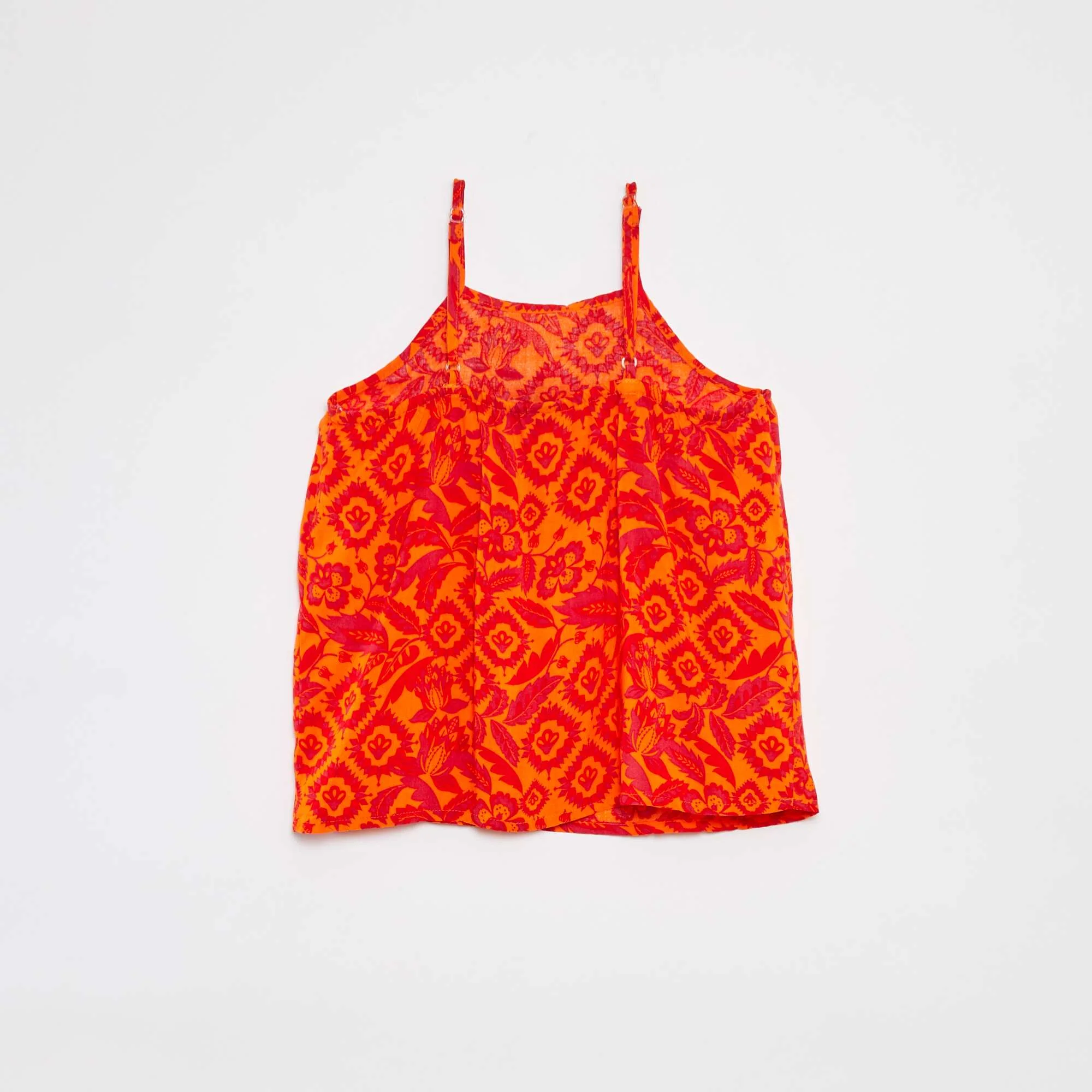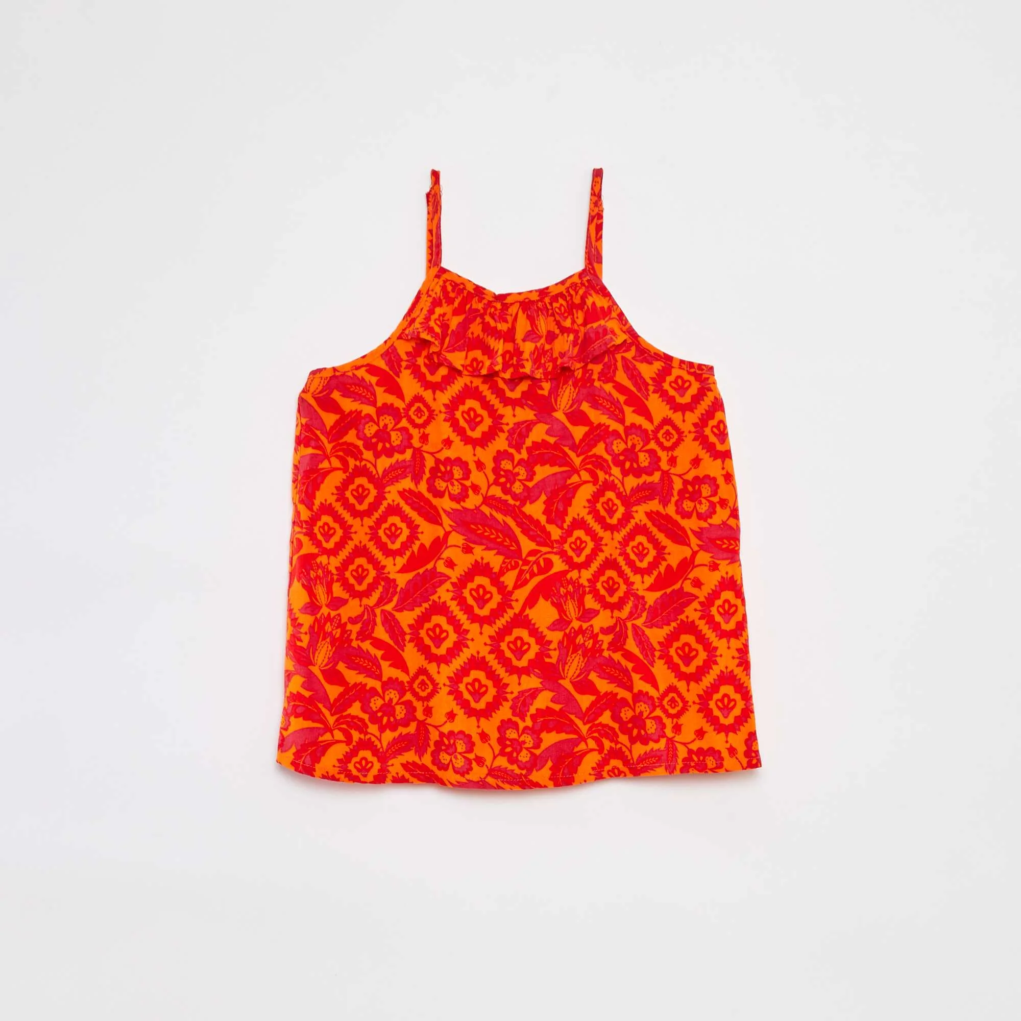 Top à fines bretelles avec col volanté BLANC