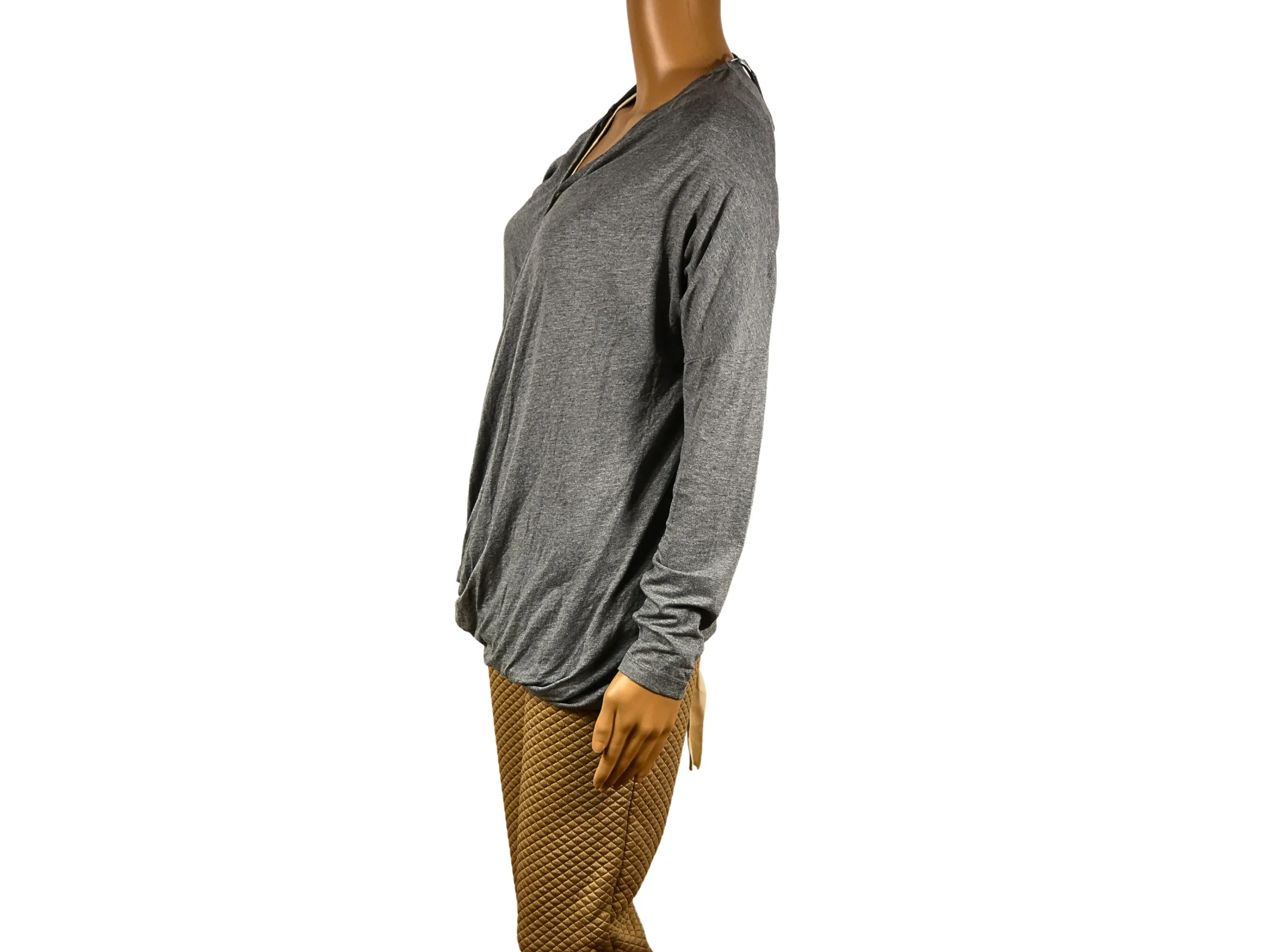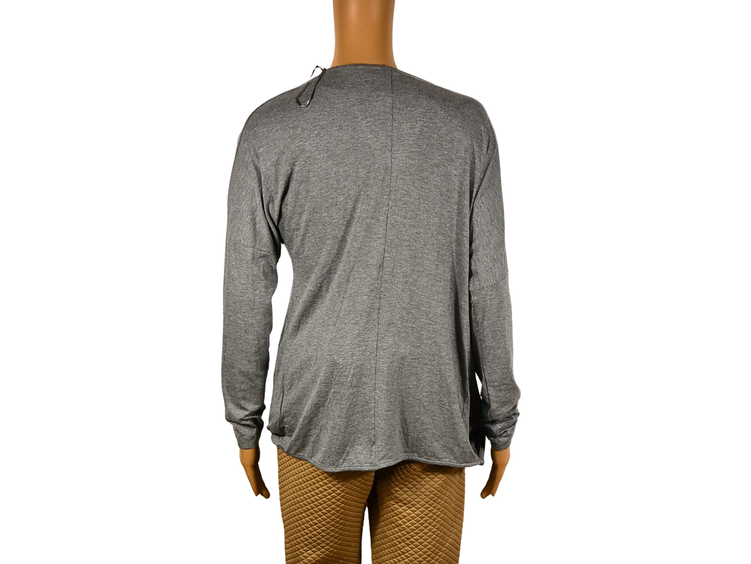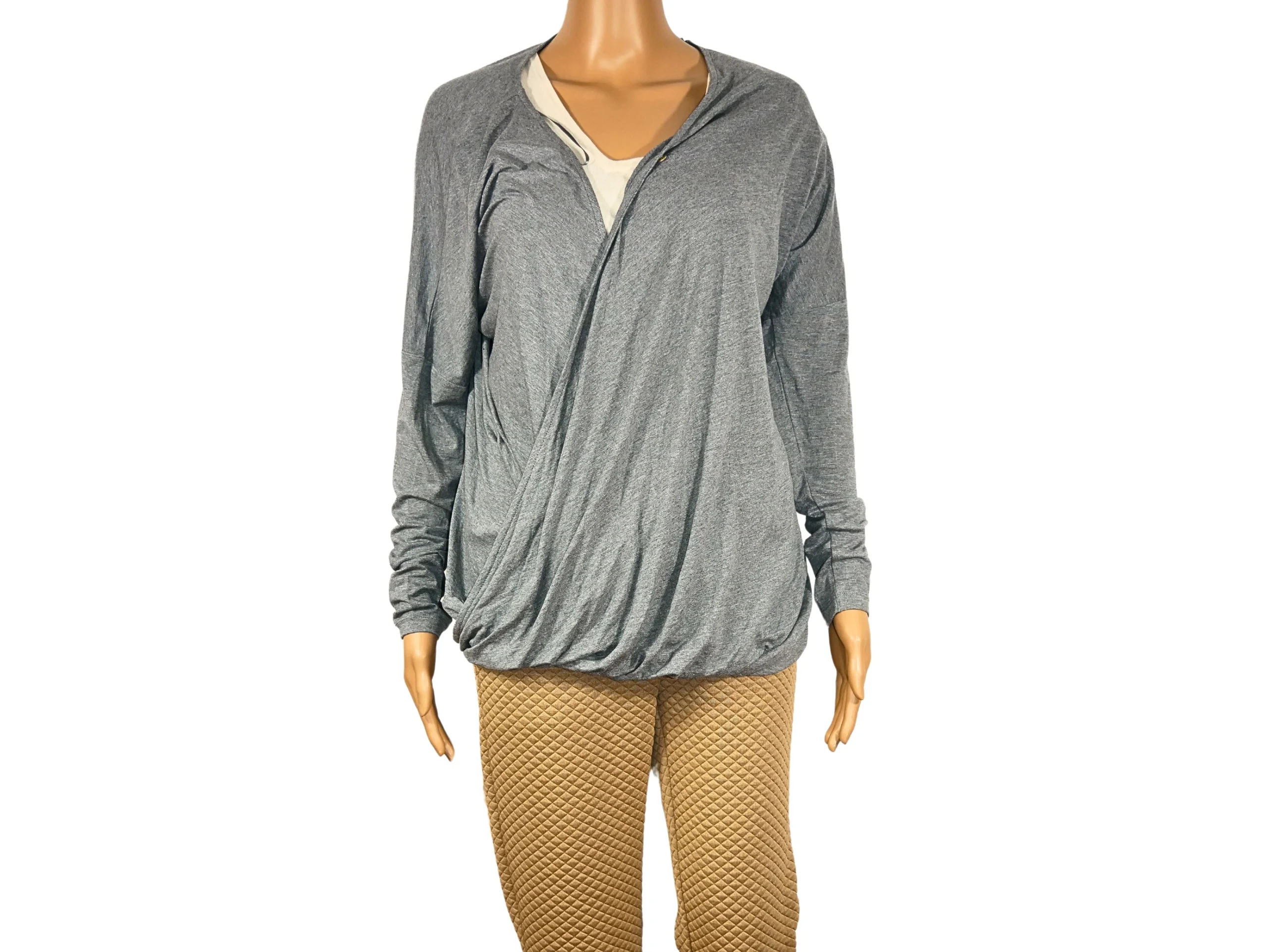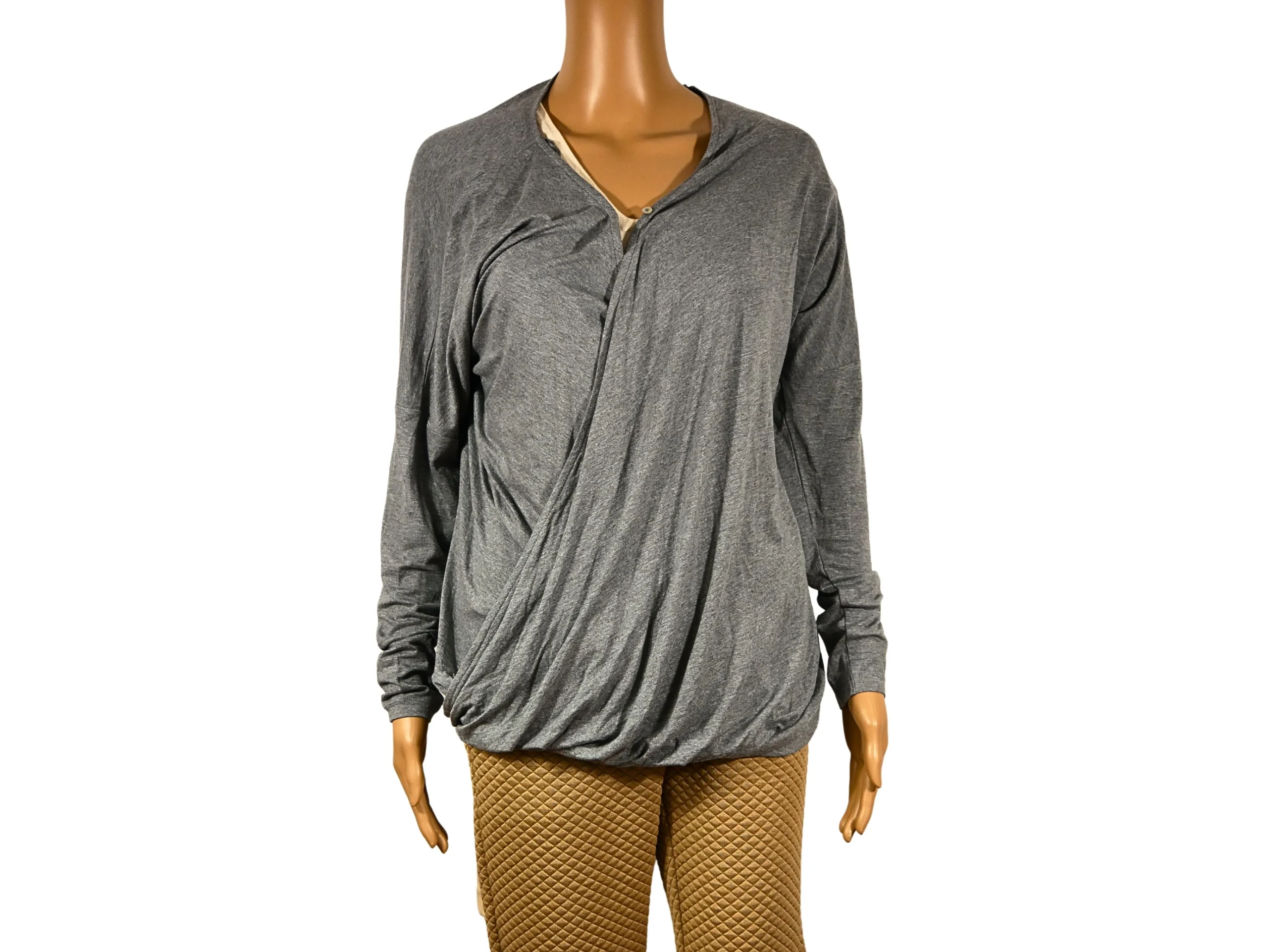 Découvrez le Top asymétrique à manches longues gris pour femme en seconde main. Taille 40/42, avec 65 cm de longueur et 42 cm de largeur, ce vêtement est en excellent état. Laissez-vous séduire par son style unique et son confort ultime !