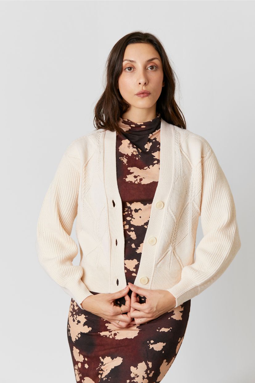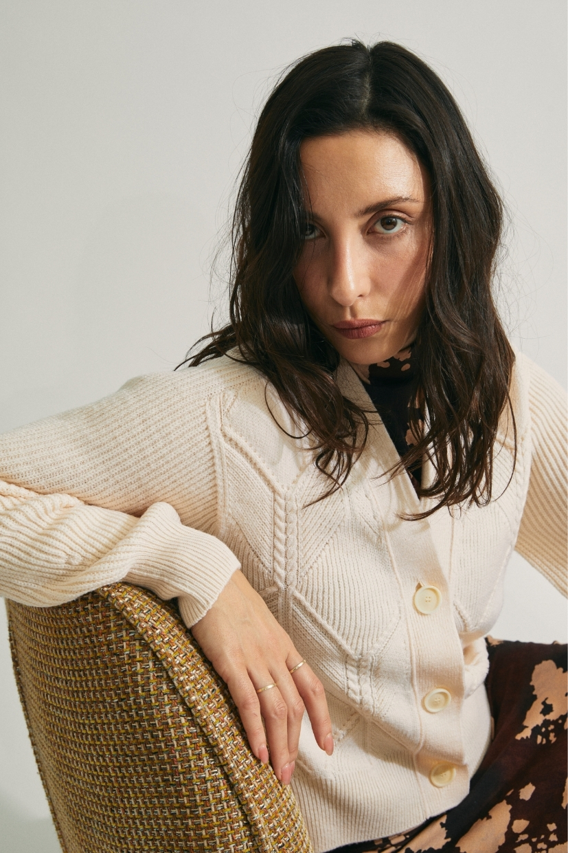 La veste femme laine écru Caly est tricotée en 100% pure laine mérinos française.