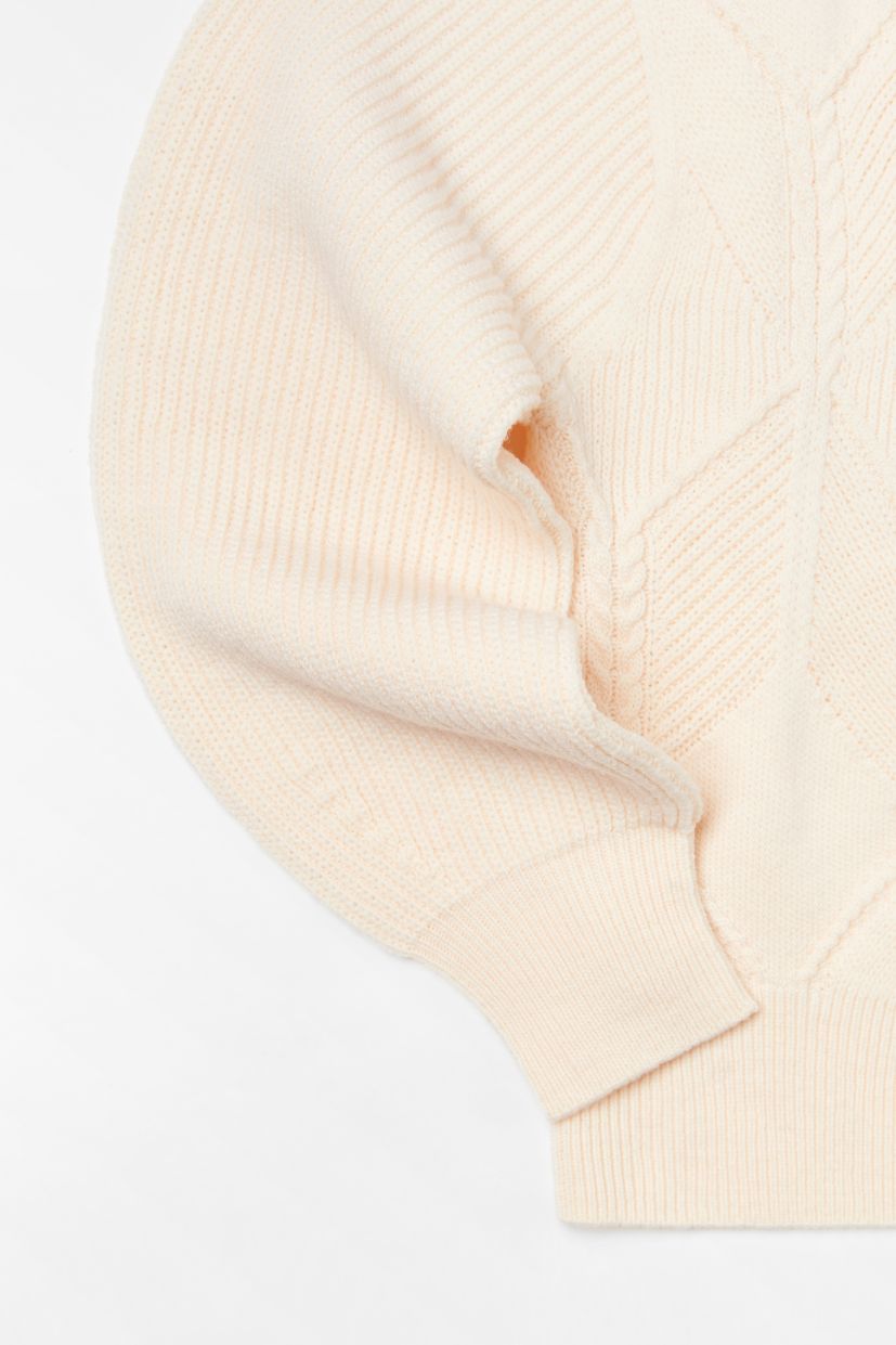 - Manches en côtes perlées légèrement blousantes