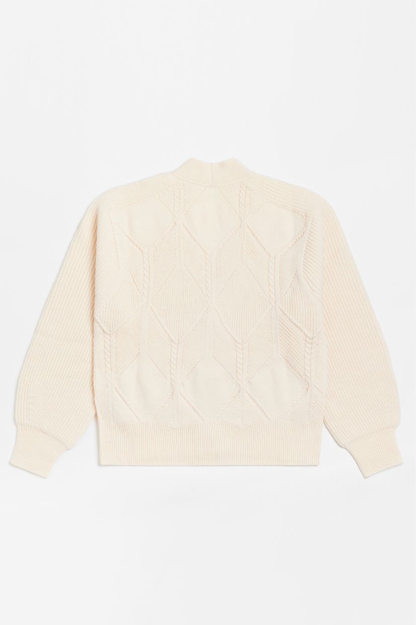 Fermée sur le devant par 3 gros boutons assortis, cette veste d’épaisseur moyenne apportera de la féminité et du confort à vos tenues grâce à sa forme ample et à son mélange de points élégants. Elle est tricotée sans couture avec un fil peigné particulièrement doux au toucher.