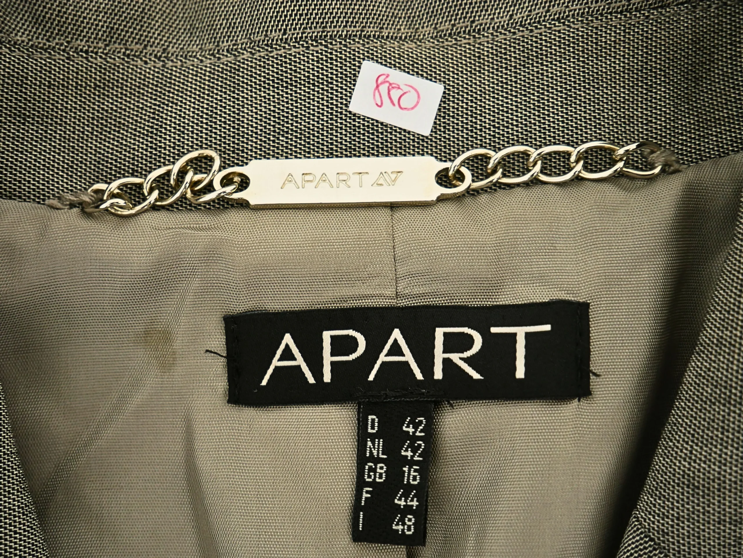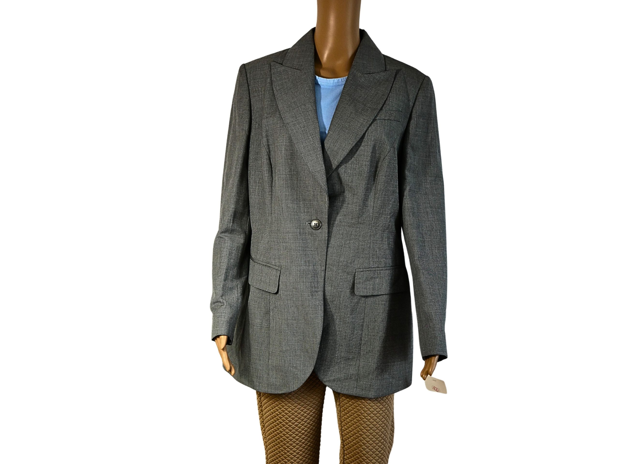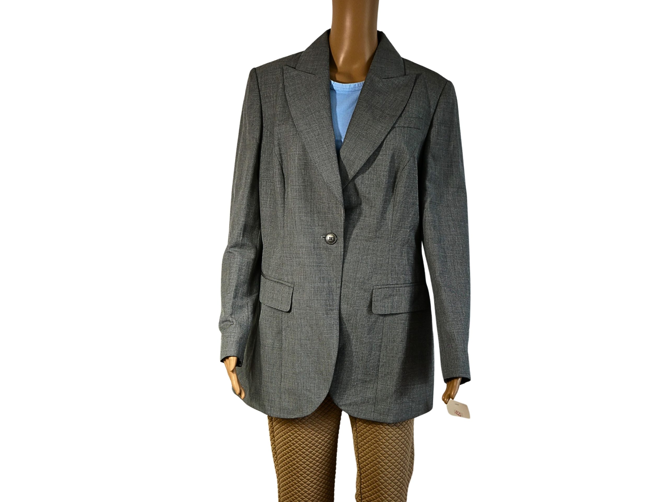 La Veste de tailleur grise APART IV pour femme est à la fois élégante et moderne. Ce blazer neuf de taille FR44 mesure 77 cm de longueur et 42 cm de largeur, ce qui en fait un choix parfait pour les femmes soucieuses de leur style. Soyez à la pointe de la mode avec cette veste qui vous donnera une allure élégante et confiante!